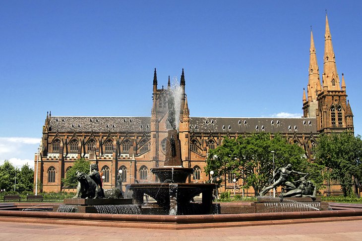 Hyde Park’a bakan St. Mary Katedrali (1868-82), Avustralya’daki Katolik Kilisesi’nin ruhsal başlangıçlarının bir simgesidir. Neo-Gotik tarzda bu çarpıcı dönüm noktası, Sidney Başpiskoposunun koltuğudur.